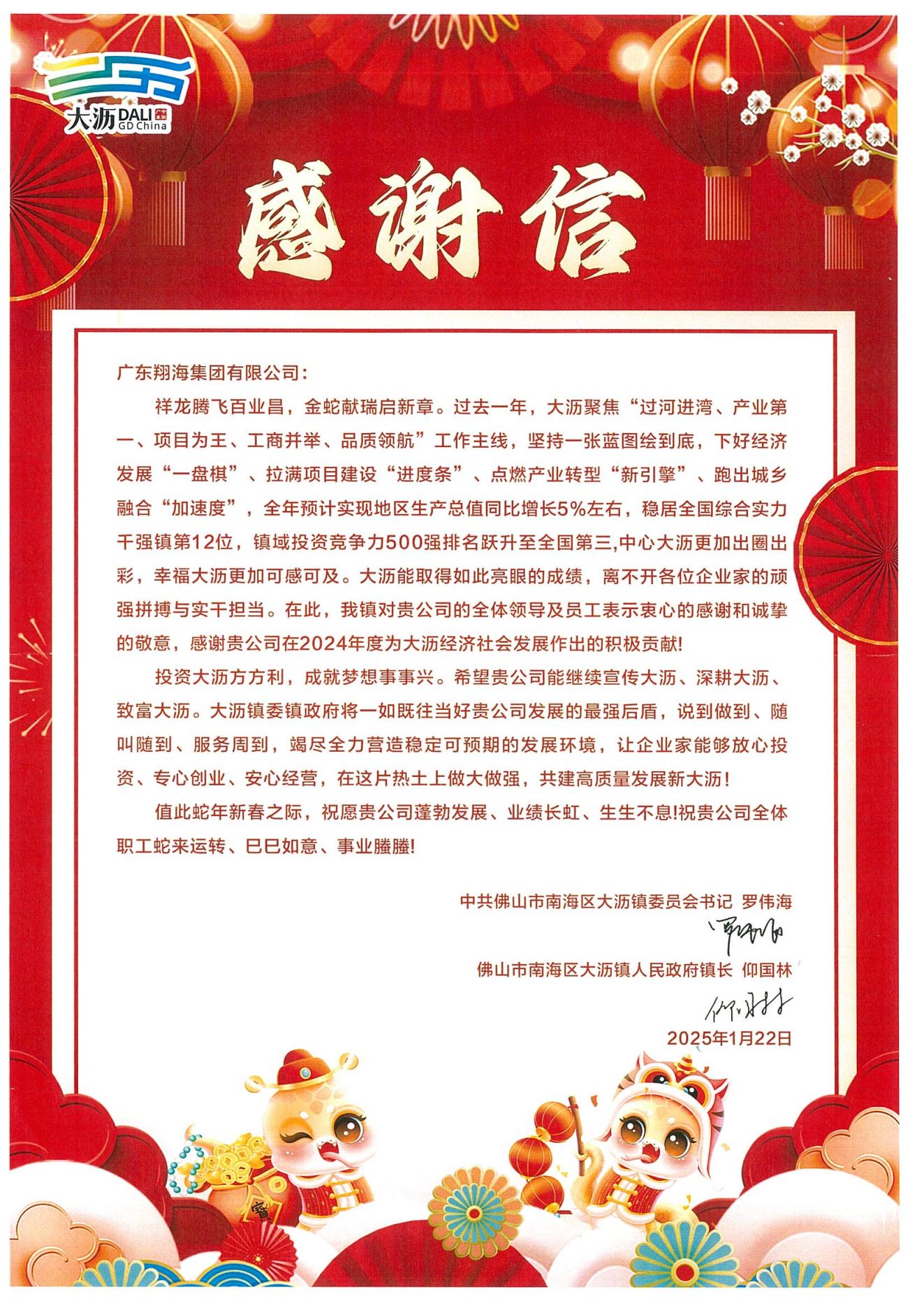 雷火网页版登录入口_雷火(中国)深感荣幸,新春之际收到了一封来自大沥镇政府的感谢信。作为大沥的本土企业,我们深知企业的成长离不开当地政府和社会各界的支持与厚爱。在此,我们衷心感谢大沥镇委镇政府,感谢各位合作伙伴的鼎力支持和信任。